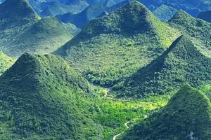 莫六公顶位于阳山县南缘,海拔1008米,与英德市和清新区毗邻。莫六公为旗山余脉,山体本身其貌不扬,但行走于它长长的山脊线上,可以俯瞰阳山杜步和清新白湾境内上千座喀斯特峰丛!